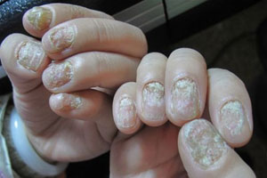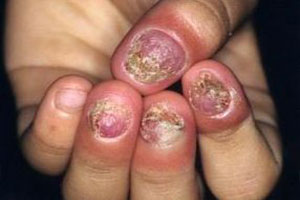 2、引起并發(fā)癥:灰指甲嚴(yán)重時(shí)可引起疼痛和不適,指甲一旦受到各種外傷,細(xì)菌易于長驅(qū)直入,從而引發(fā)甲溝炎、甲床炎、手指膿皮病等并發(fā)癥,使病人發(fā)生丹毒或蜂窩組織炎等全身癥狀嚴(yán)重的疾病。