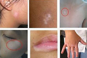 1、發(fā)病部位:易發(fā)于生殖器及其周?chē)?,以及面部、頸部、四肢等暴露部位,白斑數(shù)目不定。