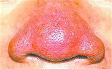 2、影響形象:如果酒糟鼻在前二期不及時治療就容易導(dǎo)致鼻部肥大,形成鼻贅,狀如癩蛤蟆趴在臉上,極其難看且極其傷自尊。