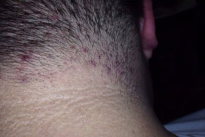 3、頸部毛囊炎:瘙癢或有輕度疼痛,排出少量膿血,結(jié)成黃痂,痂脫即愈,不留疤痕。