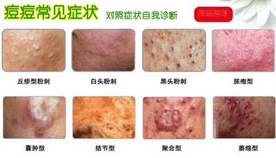 除了上述常見的三大類青春痘外,還有結(jié)節(jié)性青春痘、萎縮性青春痘、囊腫性青春痘、聚合性青春痘等多種類型。