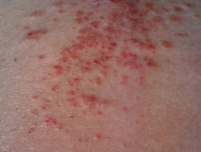 濕疹:濕疹是一種常見的表皮及真皮淺層炎癥性皮膚病。在臨床上有多種表現(xiàn),在病程發(fā)展中紅點(diǎn)、紅斑、丘疹、水皰、膿皰、糜爛、結(jié)痂等各型皮疹癥狀可循序出現(xiàn)。濕疹癥狀出現(xiàn)初期,皮膚浸潤增厚,逐步變成暗紅色及色素沉著;濕疹持久不愈時(shí),皮損紋變粗大,表現(xiàn)干燥而易發(fā)生皸裂,常見于手足、胸部、小腿、肘窩等處。