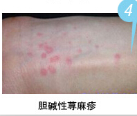 膽堿性蕁麻疹:多見于23-28歲青年。皮損特點為直徑1-3mm小風團,周圍有紅暈,疏散分布,不相融合,巨癢。