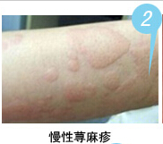 慢性蕁麻疹:病情反反復復,時多時少,長年累月不愈,治療可達2個月以上。病情時重時輕,全身癥狀一般較輕,大多數(shù)患者找不到病因。