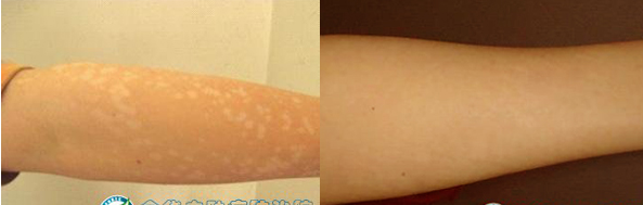 3.白斑型:除去鱗屑或痊愈后,遺留色素暫時減退。此型預示本病處于緩解階段。