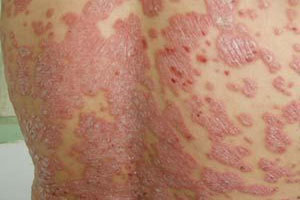 1、銀屑?。?/strong>患者頭面部損害分散成片狀,界限分明,將鱗屑刮除后,下面為紅色發(fā)亮的薄膜,輕刮薄膜可出現(xiàn)散在小出血點(diǎn)。